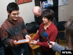 Першым прэмію атрымаў Аляксандар Баразенка — апошні фігурант у так званай “справе 14-ці”, якую распачала пракуратура пасьля студзеньскіх акцый прадпрымальнікаў: