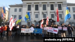 У Кіеве беларускія і ўкраінскія актывісты пікетавалі амбасаду Расеі, пратэстуючы супраць паглыбленьня беларуска-расейскай інтэграцыі, якая пагражае незалежнасьці Беларусі.