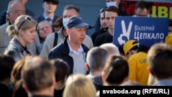 У сустрэчы з Валерам Цапкалам бралі ўдзел каля 100 чалавек, міліцыянтаў у форме побач бачна не было.