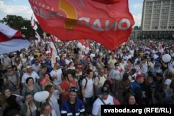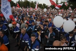 На плошчу прыйшлі работнікі горадзенскіх буйных прадпрыемстваў «Гродна Азот», водаканалу, ТЭЦ-2, тэлерадыёкампаніі «Гродна». Луналі ня толькі бел-чырвона-белыя, але і польскія сьцягі.