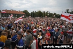 Сабралася каля пяці тысяч чалавек зь бел-чырвона-белымі сьцягамі, работнікі прадпрыемстваў. Мітынгоўцы скандавалі: «Лукашэнка, сыходзь», «Жыве Беларусь», «Верым, можам, пераможам».