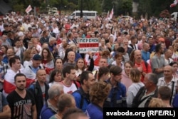 Некалькі тысяч чалавек пратэстуюць на плошчы Незалежнасьці ў Менску