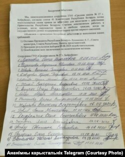 У Бабруйску настаўнікі 27-й школы адмовіліся ад страйку, але пакінулі ў сіле патрабаваньні адстаўкі Аляксандра Лукашэнкі, ураду, Савету Рэспублікі, Палаты прадстаўнікоў, а таксама прызнаньня несапраўднымі прэзыдэнцкіх выбараў ды вызваленьня палітзьняволеных.