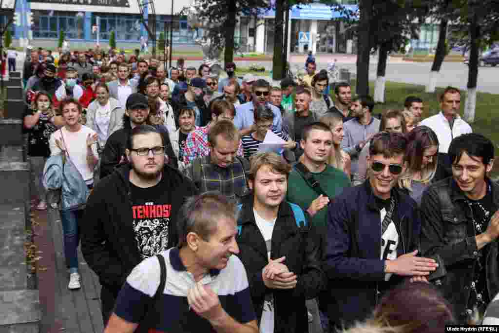 Работнікі ААТ «БелАЗ» у Жодзіна 26 жніўня выйшлі на марш у падтрымку пацярпелых падчас пратэстаў, страйкоўцаў і рэпрэсаваных работнікаў завода. Да іх далучыліся жыхары гораду. Міліцыя пад'ехала да пратэстоўцаў і папярэдзіла, што сход несанкцыянаваны, прасіла разысьціся, але людзей гэта не спыніла.