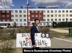 Упершыню з экалягічным плякатам ён выйшаў у 2015 годзе да мясцовага рынку. На плякаце напісаў «Шклавата — сьмерць Бярозаўкі».