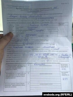 У дакумэнце адзначана, што непасрэдная прычына сьмерці высьвятляецца. Код R99 паводле Міжнароднай клясыфікацыі захворваньняў азначае «Іншыя недакладна вызначаныя і неўдакладненыя прычыны сьмерці».