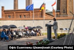 Ад Беларусі, апрача Сьвятланы Ціханоўскай, у мэмарыяльных урачыстасьцях у Бэрліне бярэ ўдзел сястра палітзьняволенай Марыі Калесьнікавай Тацяна Хоміч.